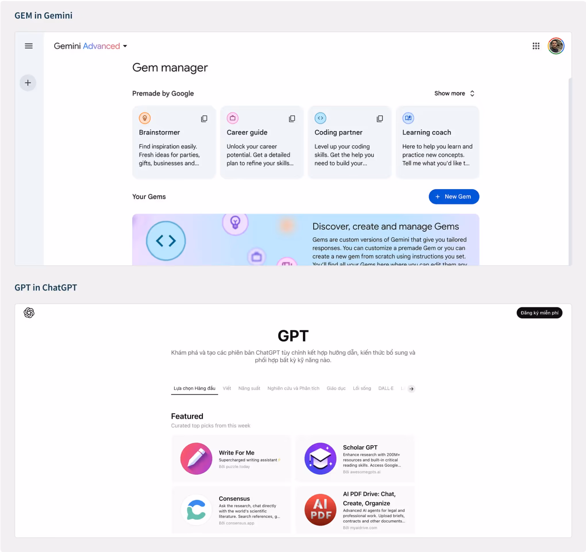 For example, each Al platform has its own vibe. Gemini comes with the GEM feature, ChatGPT runs on GPT, so switching between them means learning a whole new rhythm and way of working.