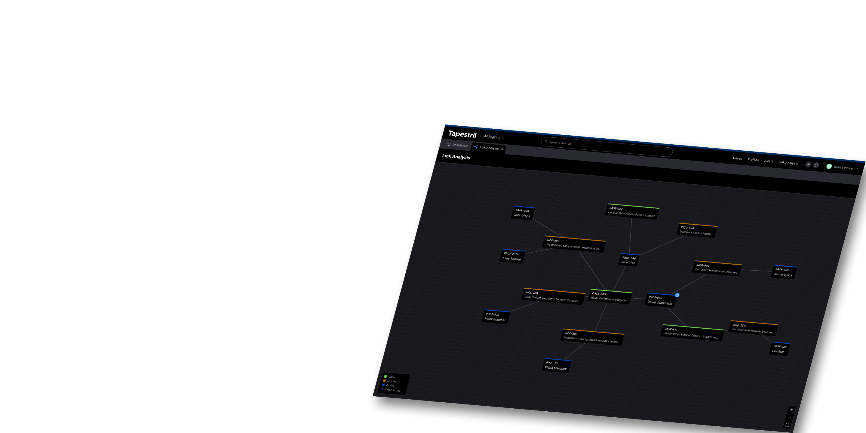 Rich profiles for people or entities with linked incidents, cases, and connections that reveal hidden networks.