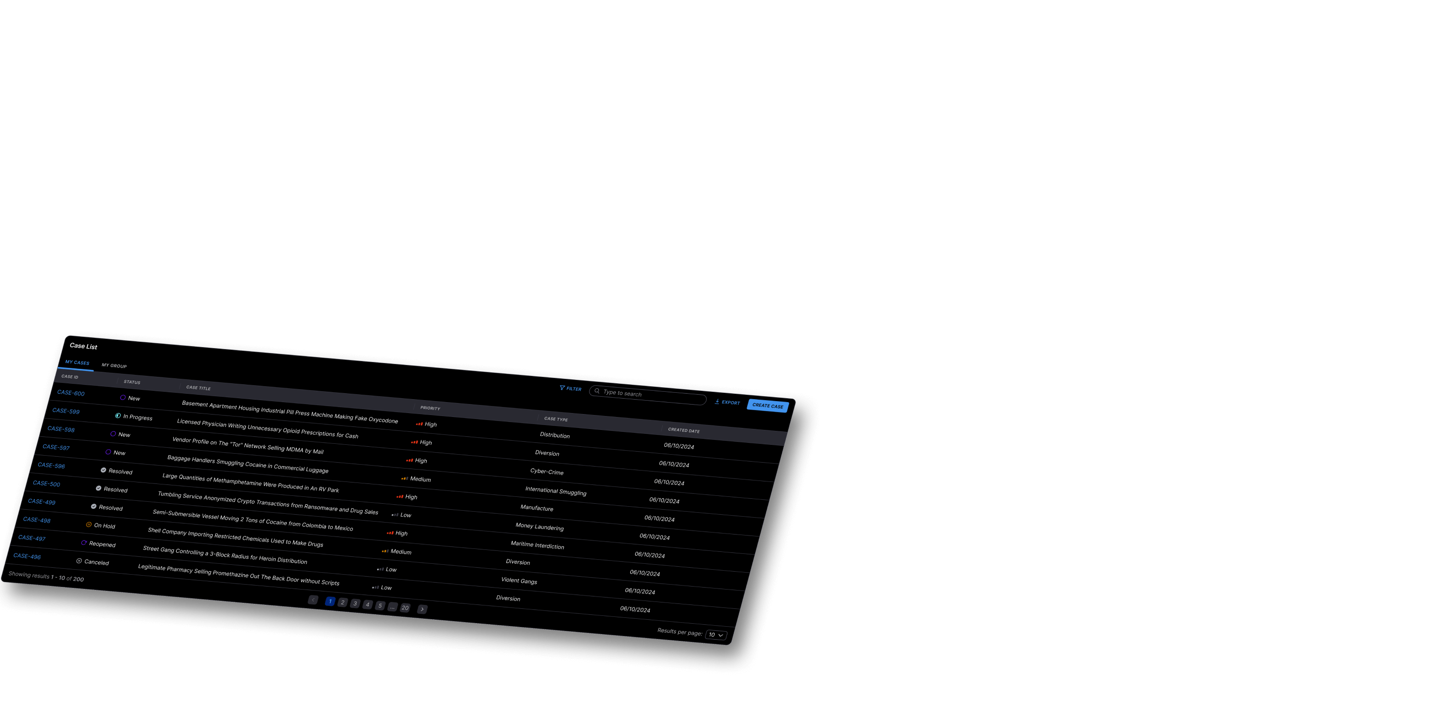 Structured case creation with timelines, comments, attachments, supervisor review, and exportable reports.